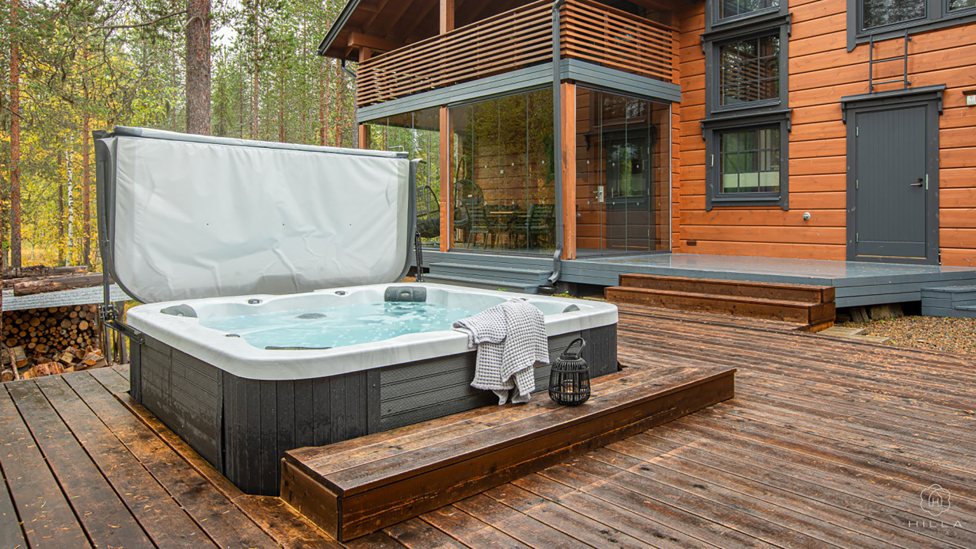 Villa Amiraali is a wonderful unique vacation villa in one of the best places in Levi. It is located near the Levi Black slope and Gondola. Ski trails and sledding trails start next to the villa. The city center is only 1.8 kilometers away. Grocery store and Poron Bensis are located 200 meters away. Activity Park, Padel court, mini golf and children’s traffic park are located 600 meters away. Great facilities for enjoyment and a successful vacation. There is space for several families, groups or even companies. A modern glazed hut and outdoor jacuzzi complete even the most demanding vacation.